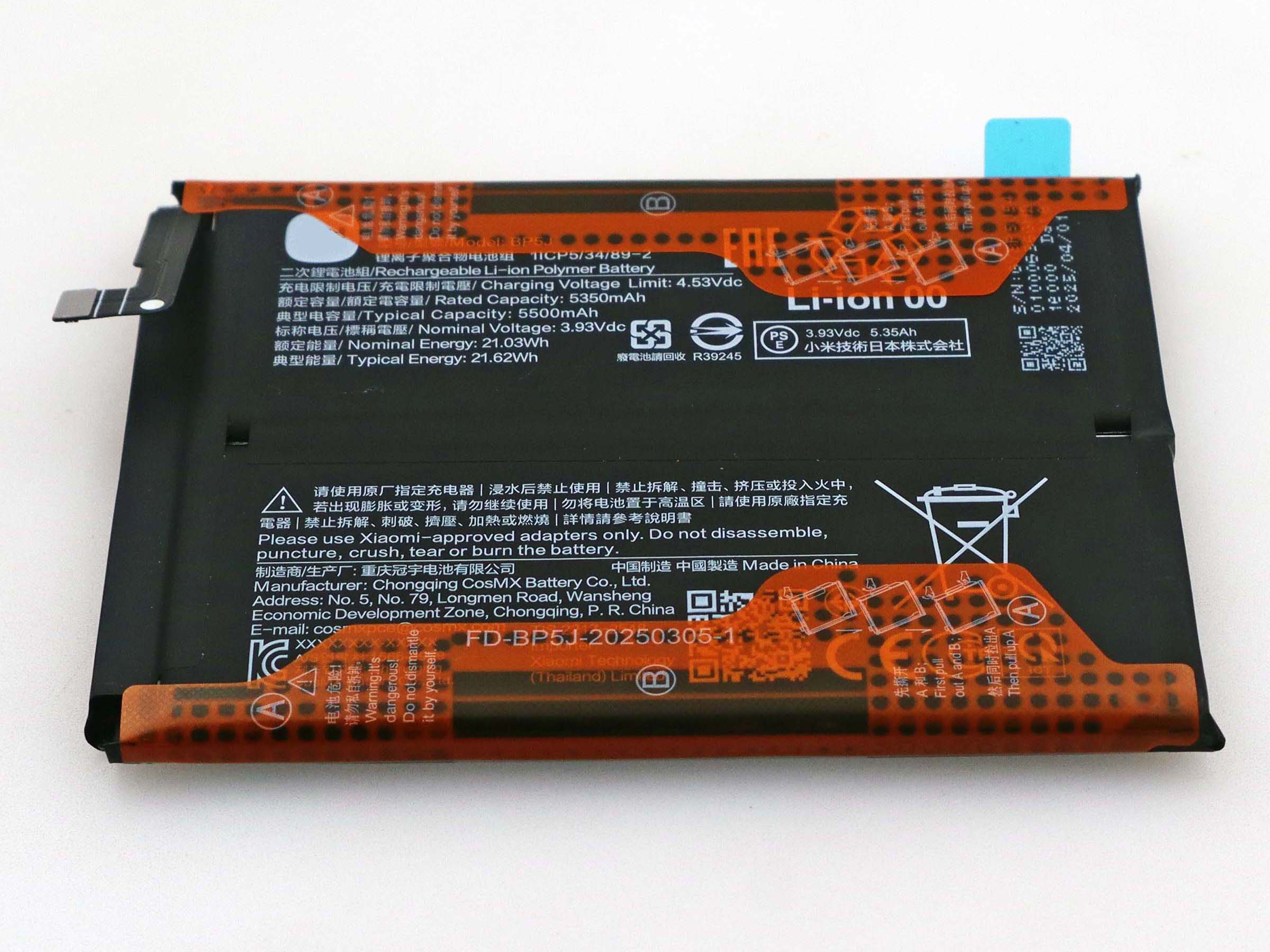 New 5500mAh BP5J Li_ion replacement Battery for Xiaomi 15T Support 67W Fast Charging
